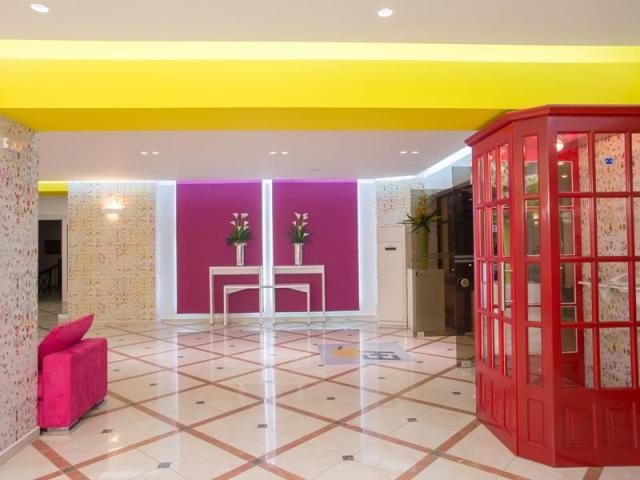75 pokojů. Vstupní hala s recepcí, 2 výtahy, restaurace, bar, TV lounge. V zahradě bazén s mořskou vodou, na terase lehátka a slunečníky zdarma, osušky na depozit. |